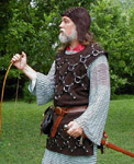 this tradition by employing a unique construction technique ~ we've skipped the backing garment altogether. Instead, we securely rivet leather scales to each other as the armor is