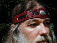 Our Royal Circlets bring together fine leather and hand-hammered brass in a most regal combination. Shown in chestnut brown leather, Royal Circlets are also available in dark tan, dark brown or black leather. Each one is custom fit to its wearer, with a lace tie at the back for adjustability if needed. Please